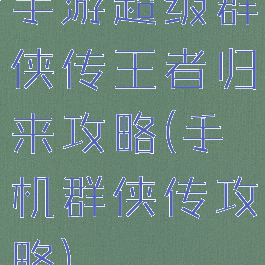 手游超级群侠传王者归来攻略(手机群侠传攻略)
