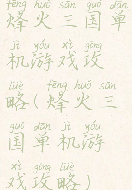 烽火三国单机游戏攻略(烽火三国单机游戏攻略)