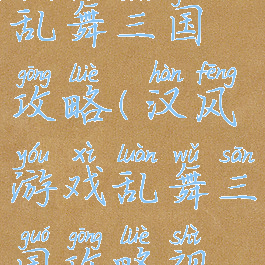 汉风游戏乱舞三国攻略(汉风游戏乱舞三国攻略视频)