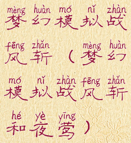 梦幻模拟战风斩(梦幻模拟战风斩和夜莺)