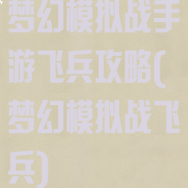梦幻模拟战手游飞兵攻略(梦幻模拟战飞兵)