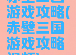 赤壁三国游戏攻略(赤壁三国游戏攻略视频)