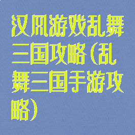 汉风游戏乱舞三国攻略(乱舞三国手游攻略)
