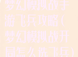 梦幻模拟战手游飞兵攻略(梦幻模拟战开局怎么选飞兵)