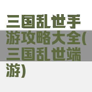 所在位置: 首页 > 专题 > 三国乱世手游攻略大全(三国乱世端游)