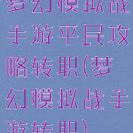 梦幻模拟战手游平民攻略转职(梦幻模拟战手游转职)