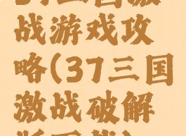 37三国激战游戏攻略(37三国激战破解版下载)