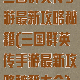 三国群英传手游最新攻略秘籍(三国群英传手游最新攻略秘籍大全)