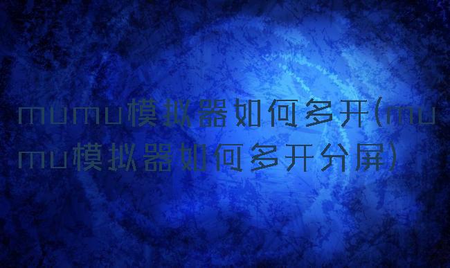 mumu模拟器如何多开(mumu模拟器如何多开分屏)