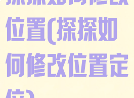 所在位置: 首页 > 专题 > 探探如何修改位置(探探如何修改位置定位)