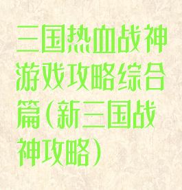 三国热血战神游戏攻略综合篇(新三国战神攻略)