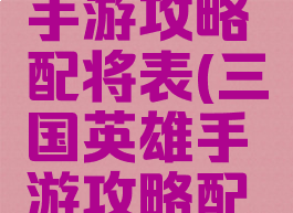 三国英雄手游攻略配将表(三国英雄手游攻略配将表图)