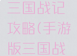 百度游戏三国战记攻略(手游版三国战记攻略)