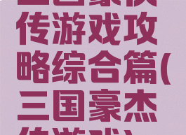 三国豪侠传游戏攻略综合篇(三国豪杰传游戏)