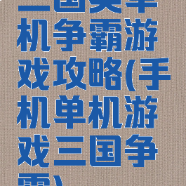 三国类单机争霸游戏攻略(手机单机游戏三国争霸)