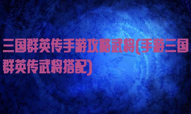三国群英传手游攻略武将(手游三国群英传武将搭配)