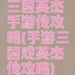 三国英杰手游传攻略(手游三国戏英杰传攻略)